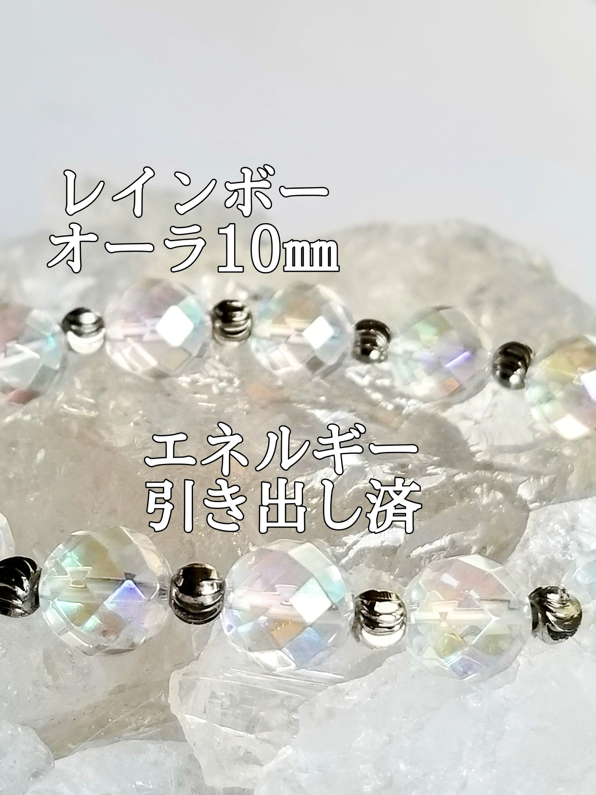 個人的な感想ですが、強烈な波動エネルギーですね。若干キツいエネルギーなので感覚が鋭い方は酔いに注意してください。こちらは透明度の高い水晶にイオン化した金や銀などの金属を用いて真空蒸着処理を施したものになります。タイプとしては上位の高波動エネルギーに仕上がっていると思います。見た目がキラキラしていて綺麗なのでアクセサリーとしても楽しめます