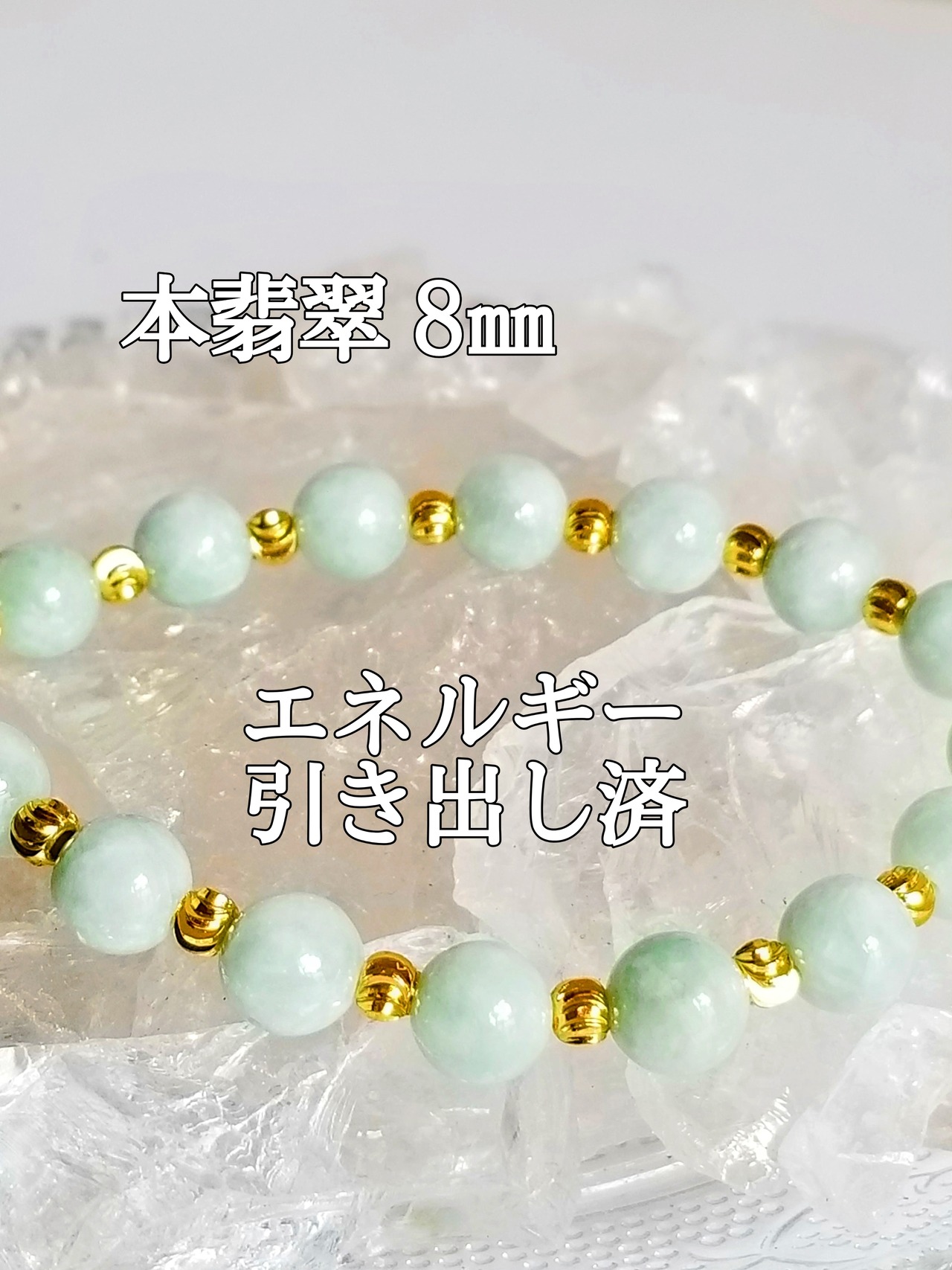 天然本翡翠8㎜(ジェイド)パワーストーンブレスレット【完全天然石】エネルギー引き出し済 完全浄化 本物 アクセサリ スピリチュアル レディース