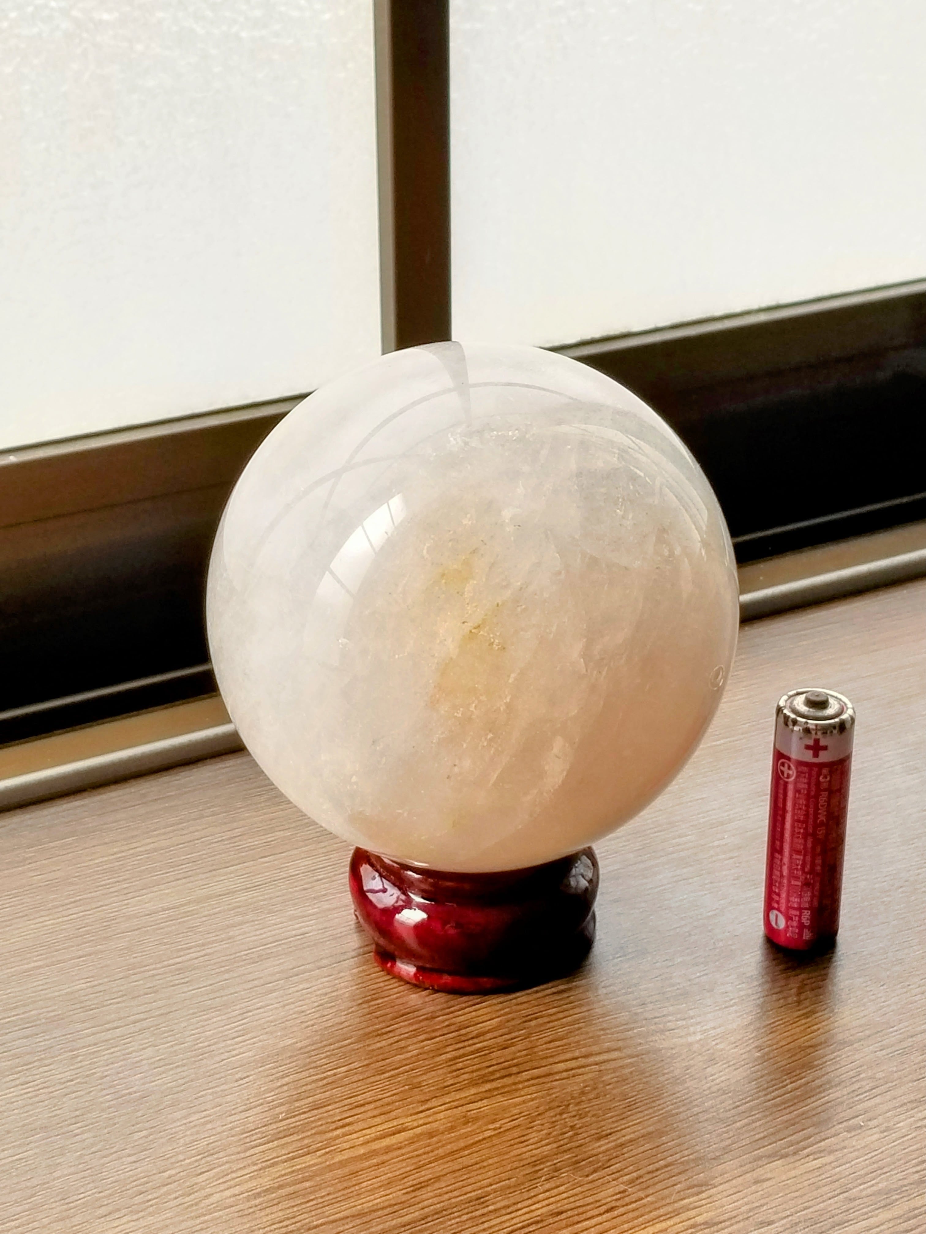 個人的な感想ですが、桁違いに強い浄化エネルギーですね。範囲も広いです。さすが覚醒したヒマラヤ水晶ですね。水晶丸玉としては完成されたエネルギーに仕上がっていると思います。丸玉の特徴としては全体的にエネルギーが出ていることでしょうか。水晶は白っぽくなるにつれて浄化エネルギー寄りに変化していきます