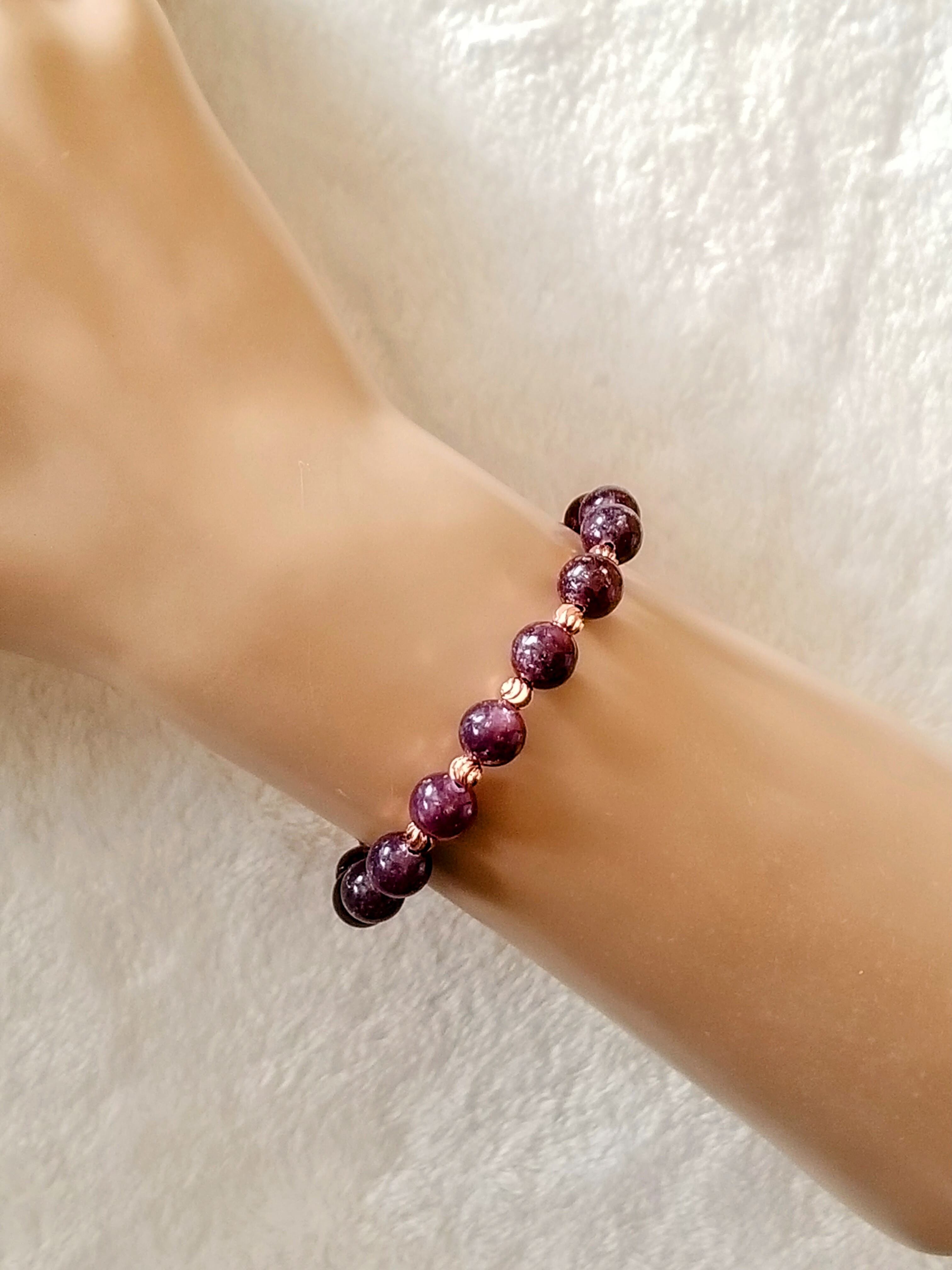 レピドライト(リチア雲母)パワーストーンブレスレット【完全天然石】エネルギー引き出し済 完全浄化 本物 アクセサリ スピリチュアル レディース