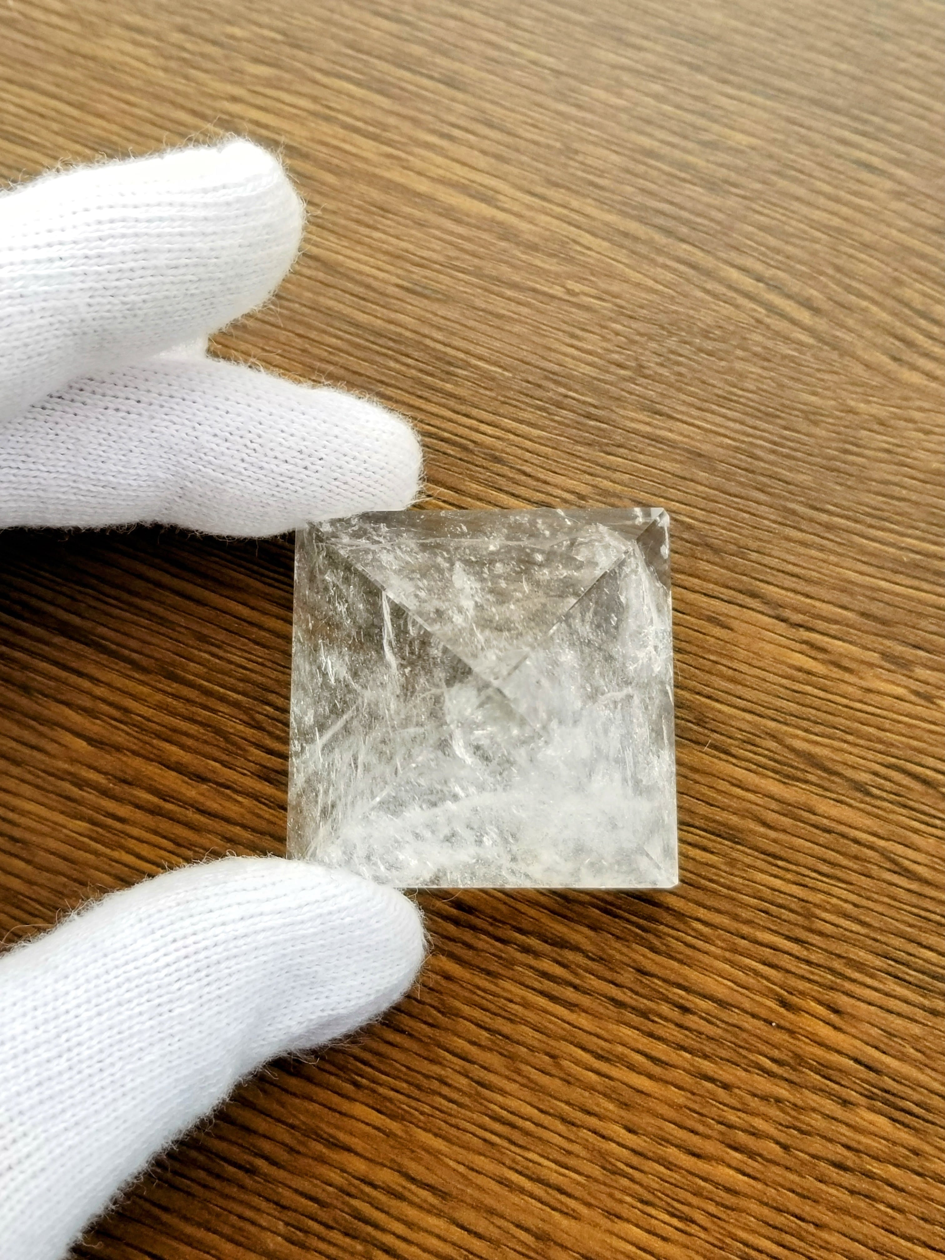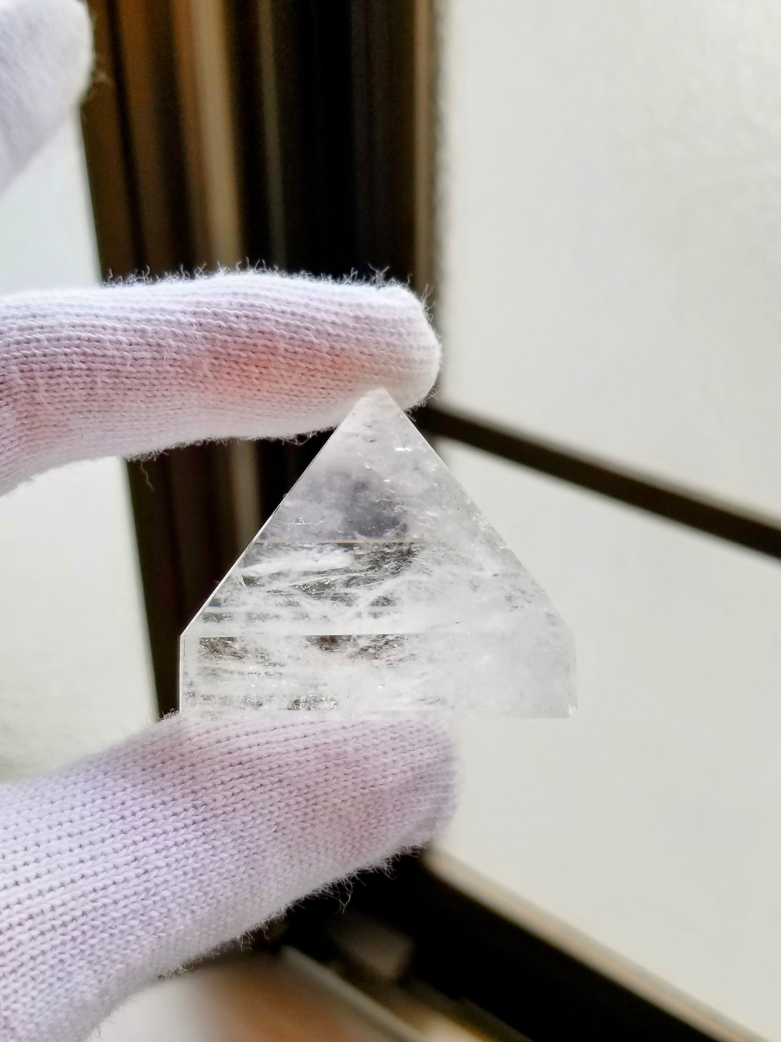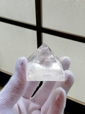 個人的な感想ですが、ものすごい波動エネルギーですね。しかもキツめのエネルギーです。感覚が鋭い方は酔いにご注意ください。エネルギー範囲も広いです。ピラミッド型は天井方向に強くエネルギーが出ているのが特徴ですね。水晶としても完成形のエネルギーに仕上がっていると思います